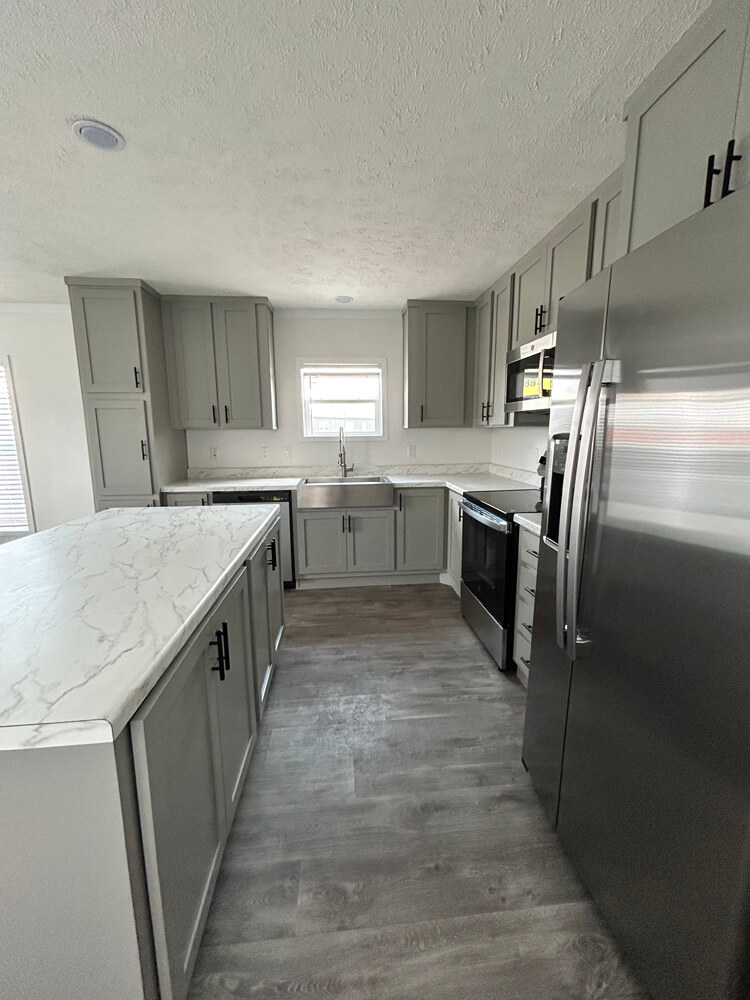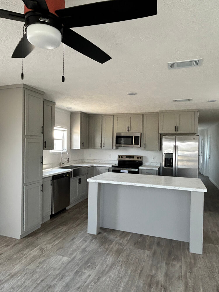 - Bright, Open Kitchen with Island – Ample cabinet and countertop space, complete with an island for meal prep or casual dining.