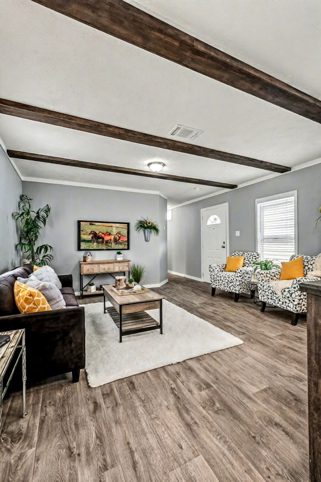 Introducing The Declaration, the newest addition to the New Vision Single-section home lineup. At 16′ x 76′ with 1,140 sq. ft. of living space, this home offers a wide-open floor plan, providing both functionality and style in a single-section design. Whether you’re a first-time homeowner or looking to downsize, The Declaration offers a perfect balance of space, comfort, and convenience.