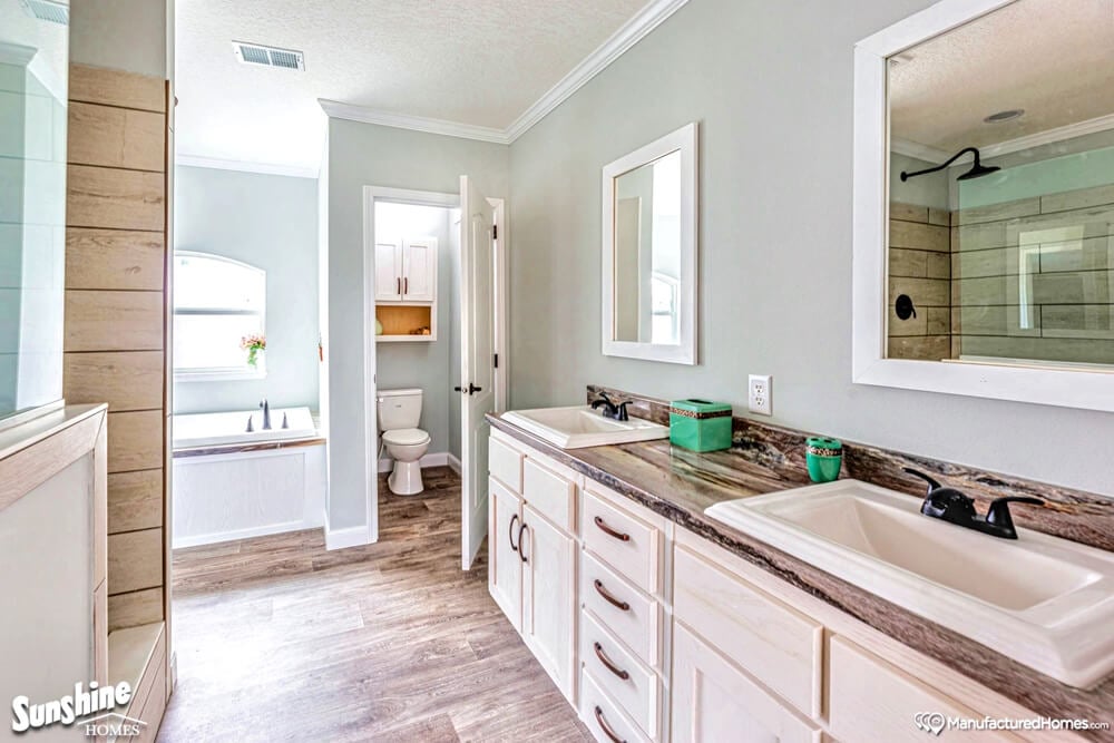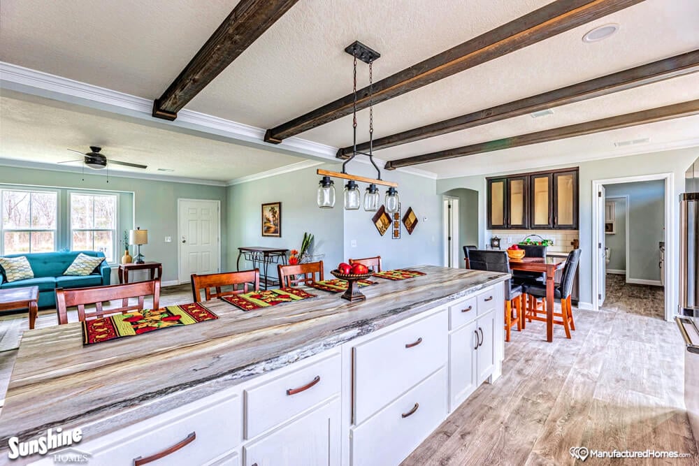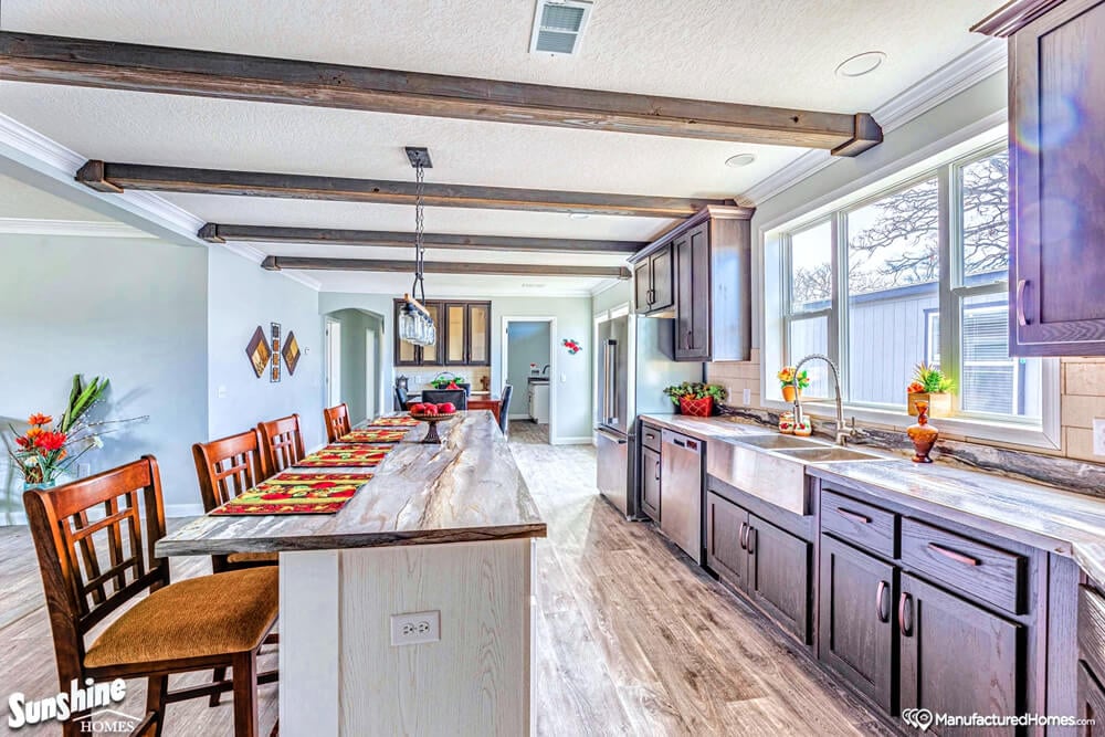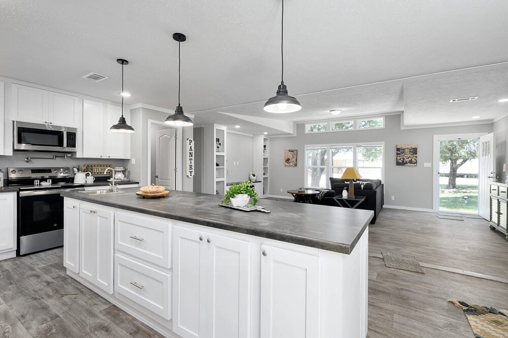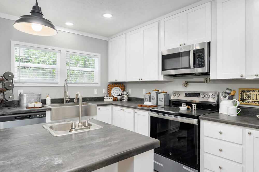 We carry a wide variety of home models that have unique kitchen layouts and designs to appeal to a wide array of customers.  Most feature Black or Stainless Steel appliances including new refrigerator, stovetop, ovens, vent-a-hood, and dishwasher.  With large farmhouse kitchen sinks, and beautiful cabinetry, our selection cannot be beat.
